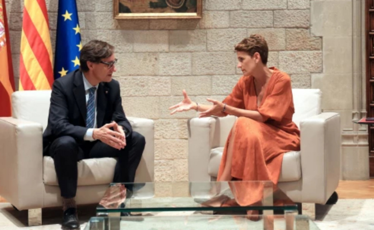 El president de la Generalitat de Catalunya, Salvador Illa, recibió el pasado lunes 9 de septiembre a la presidenta del Gobierno de Navarra, María Chivite, en el Palau de la Generalitat, donde han coincidido en "la importancia de los servicios públicos".