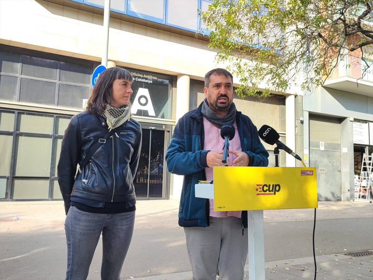 La portavoz de la CUP, Su Moreno, y el diputado en el Parlament Dani Cornellà han llevado este martes a la Oficina Antifrau de Catalunya la instalación de 77 cañones de nieve en la estación de esquí Baqueira Beret (Lleida) que, según ellos, se colocaron sin los "permisos mínimos que establece la legislación".