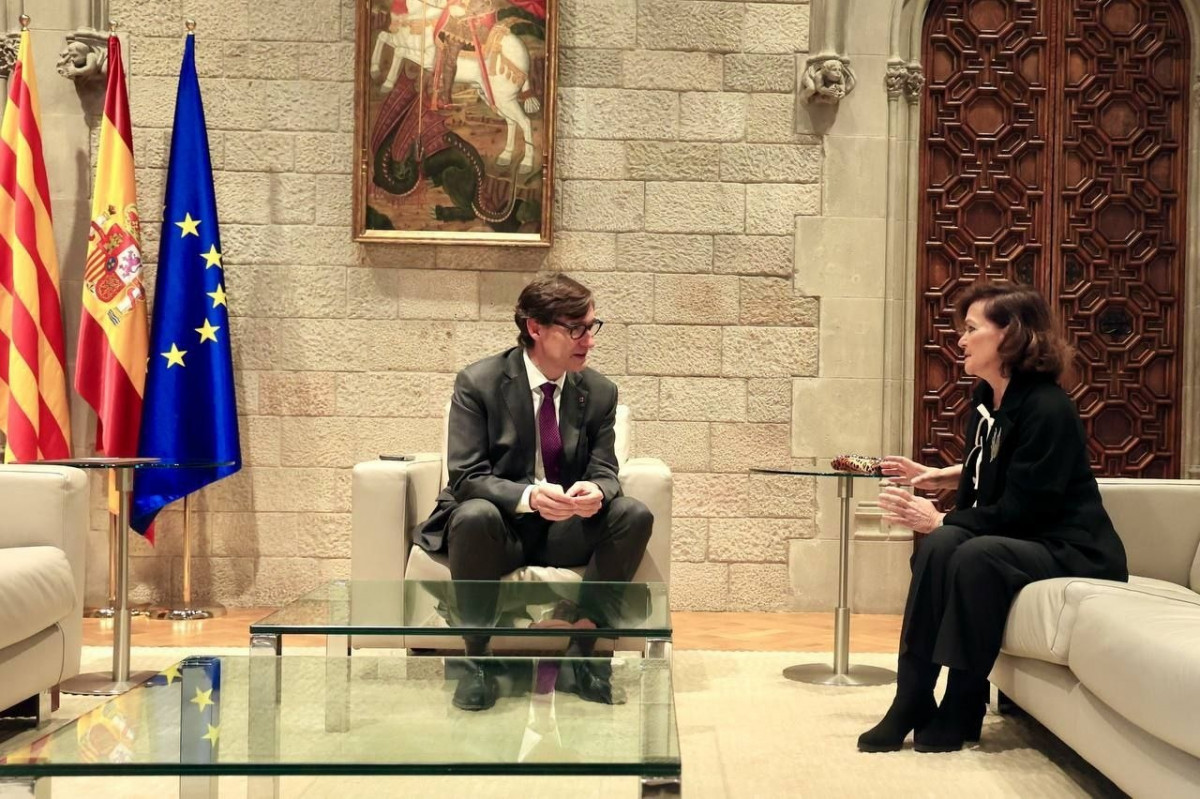 Salvador Illa recibe a Carmen Calvo en el Palau de la Generalitat