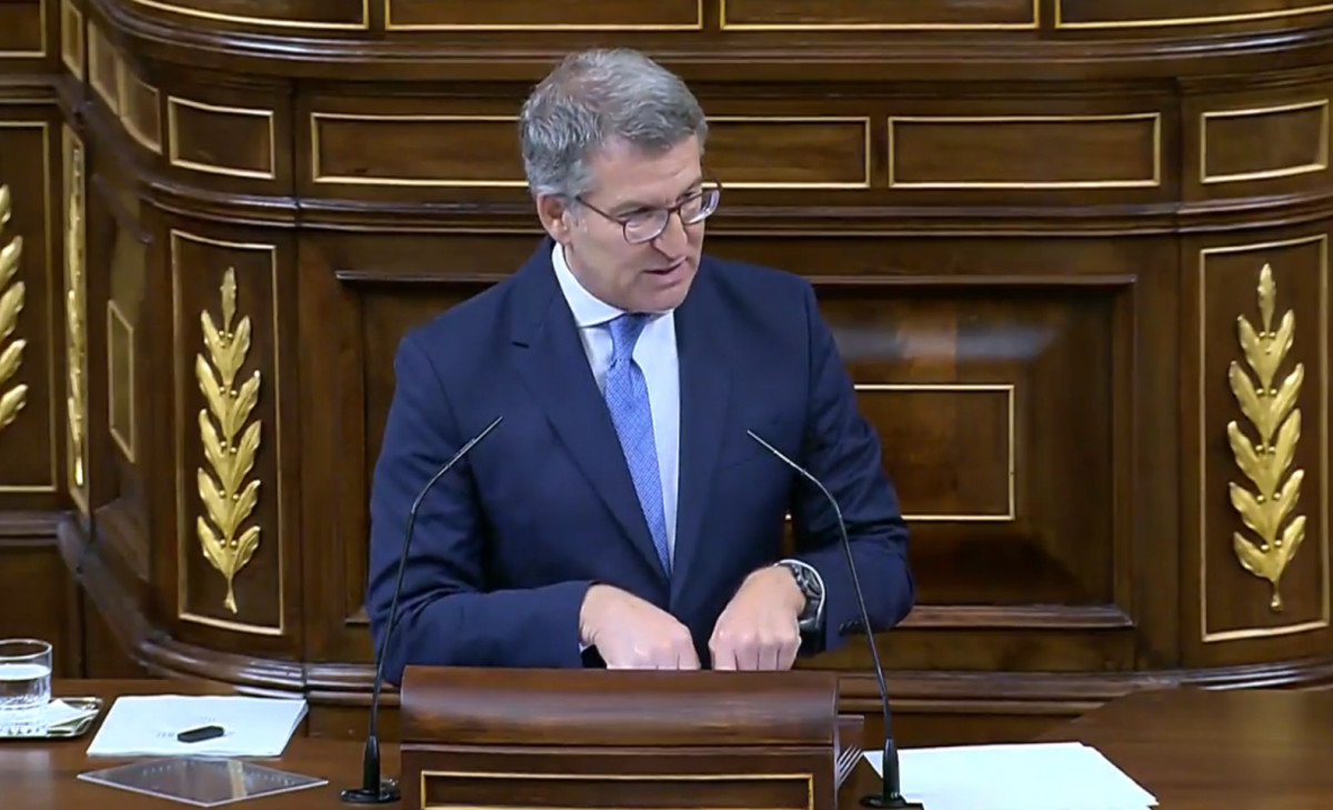 "Yo le creo capaz de todo, así que no se ofenda, pero oírle a usted dar lecciones de regeneración sería como oír al señor Otegi dar lecciones de derechos humanos", ha declarado Feijóo a Sánchez en el Pleno del Congreso, tras la comparecencia del presidente del Gobierno exponiendo las líneas estratégicas de su plan de calidad democrática.