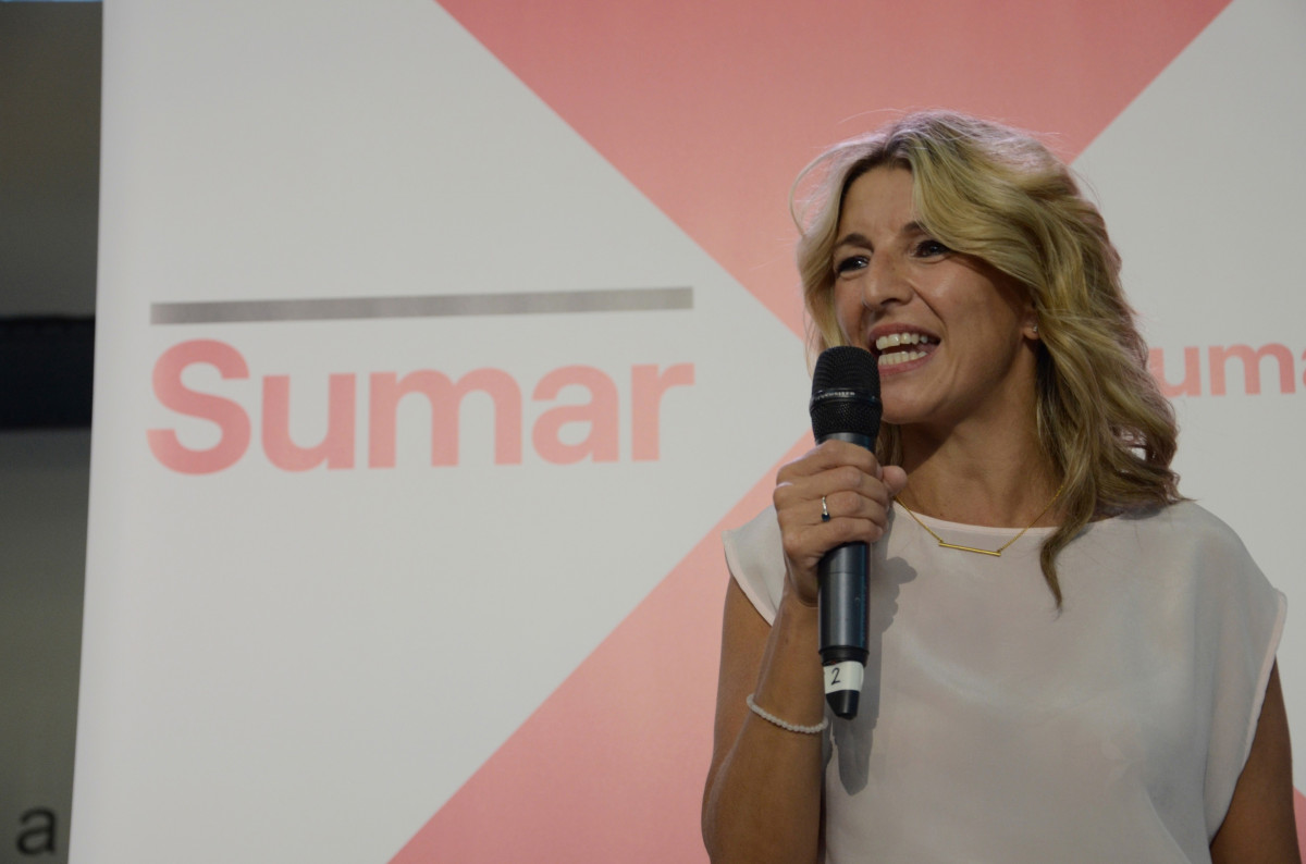 Acto seguido, Yolanda Díaz ha recalcado que acaba de "escuchar al PP" decir "auténticas barbaridades", en referencia a las críticas de los 'populares' al Estatuto del Becario. "Nos dice el PP, una vez más, defendiendo su modelo real, que está en contra del estatuto mal llamado del becario en nuestro país, porque dice el PP que para que los jóvenes en nuestro país puedan poner un pie en una empresa tienen que seguir siendo esclavos y les decimos alto y claro desde Sumar que ese modelo ha fracasado, que ese modelo es el pasado", ha zanjado.