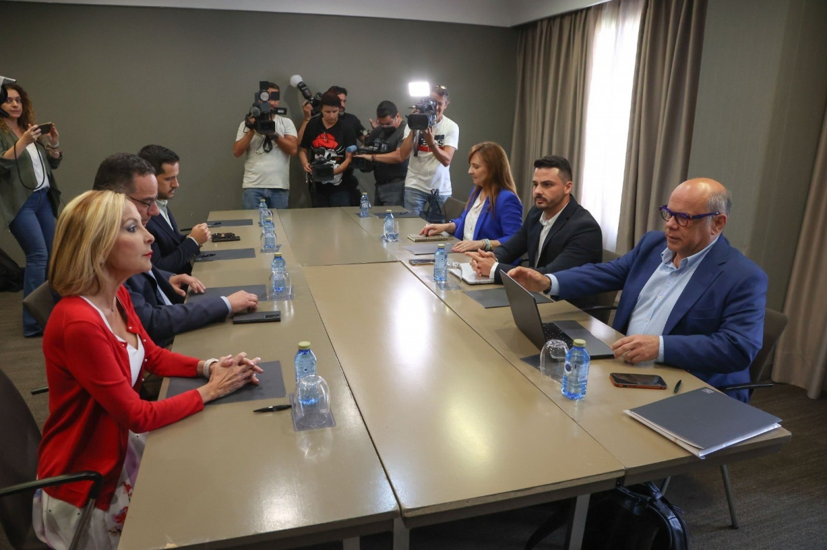 El secretario general de Coalición Canaria (CC) y el presidente del PP de Canarias, Fernando Clavijo y Manuel Domínguez, respectivamente, han cerrado este martes las comisiones negociadoras para gobernar juntos en Canarias.