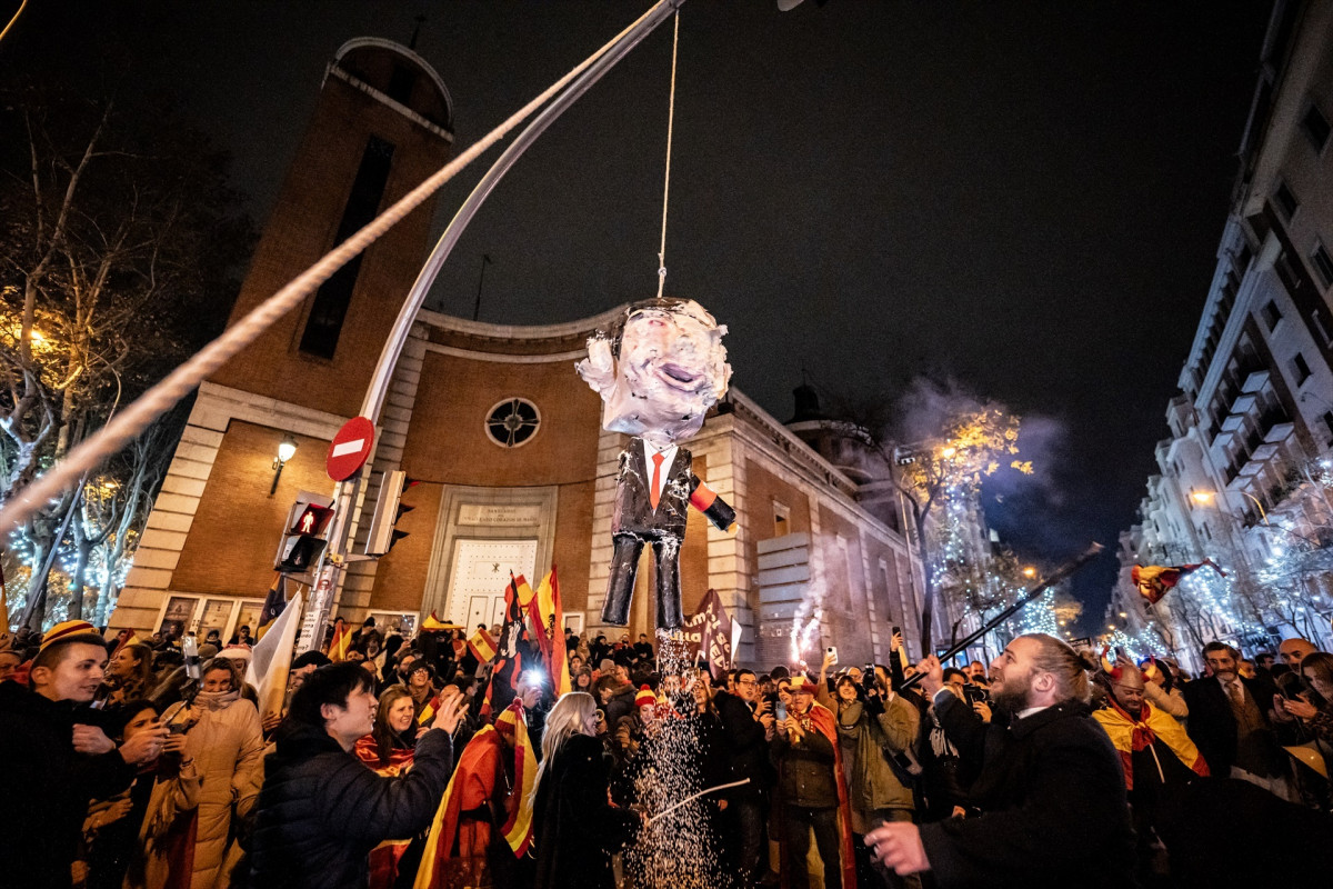 La quema de fotos del Rey Juan Carlos I en 2008 o la de un muñeco del expresidente catalán Carles Puigdemont en 2019 son algunos de los casos, en los que los tribunales descartaron un presunto delito de incitación al odio, que preceden al apaleamiento que tuvo lugar la pasada Nochevieja a una piñata que simulaba al presidente del Gobierno, Pedro Sánchez.