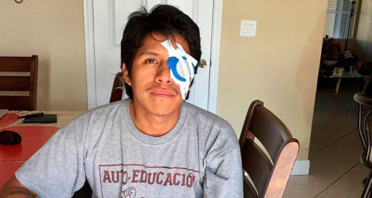 Marco Antonio Ramón Huarato recibió por parte de la policía unos disparos con perdigones de plomo hace cinco años, y todavía necesita tratárselo para no perder el ojo