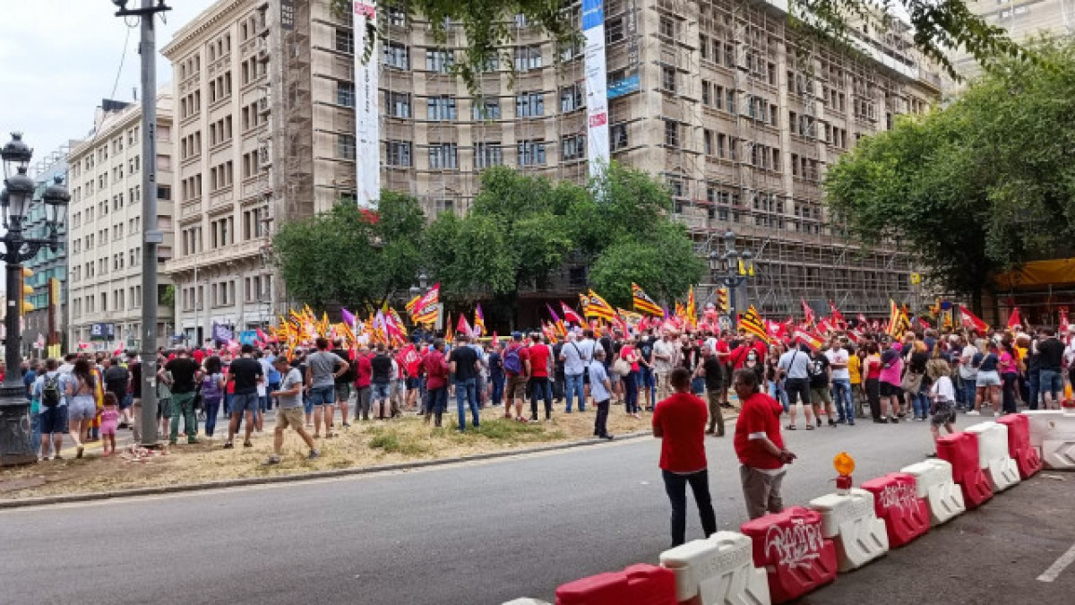 CCOO y UGT se concentran en las puertas de la sede de Foment del Treball, en Barcelona, pero las protestas se replican en Tarragona y en diferentes puntos de la Comunidad Valenciana.