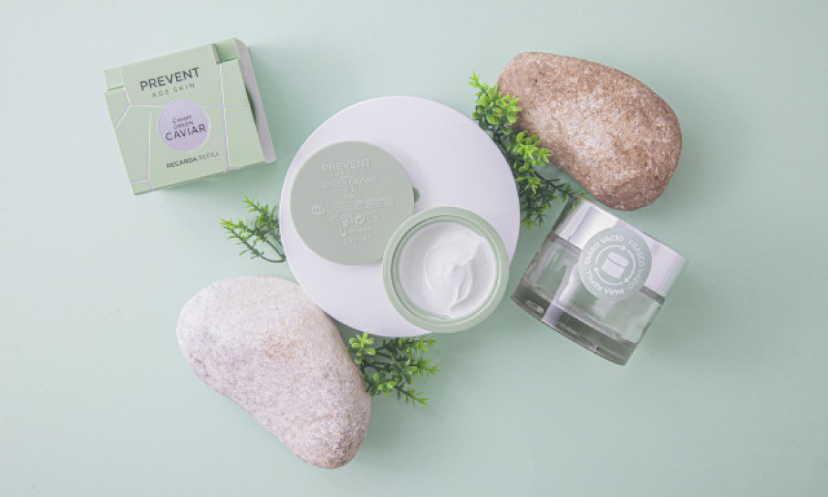 La crema Green Caviar se vende en hilos que se ajustan al bote de vidrio, que se vende por separado, para reducir el desperdicio de envases. Comprometida con los principios de la economía circular, Mercadona apuesta por los repuestos en sus productos de perfumería para reducir el plástico y sus residuos.