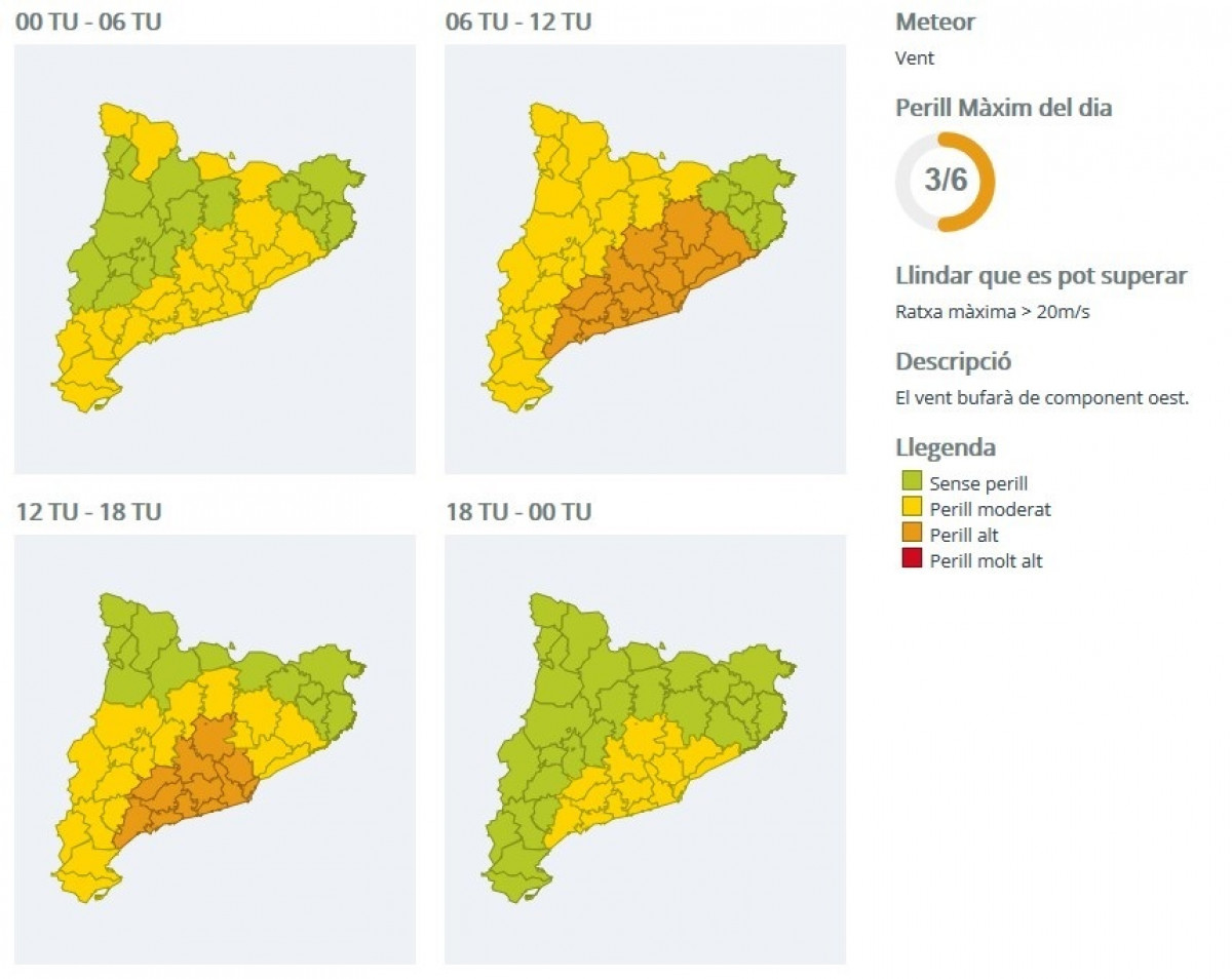 En un comunicado, han explicado que este lunes el viento "tiene que ser menos intenso de lo que estaba previsto", pero han asegurado que este martes el fenómeno se intensificará en toda Catalunya, especialmente en las comarcas centrales y del litoral y prelitoral de Barcelona y Tarragona.