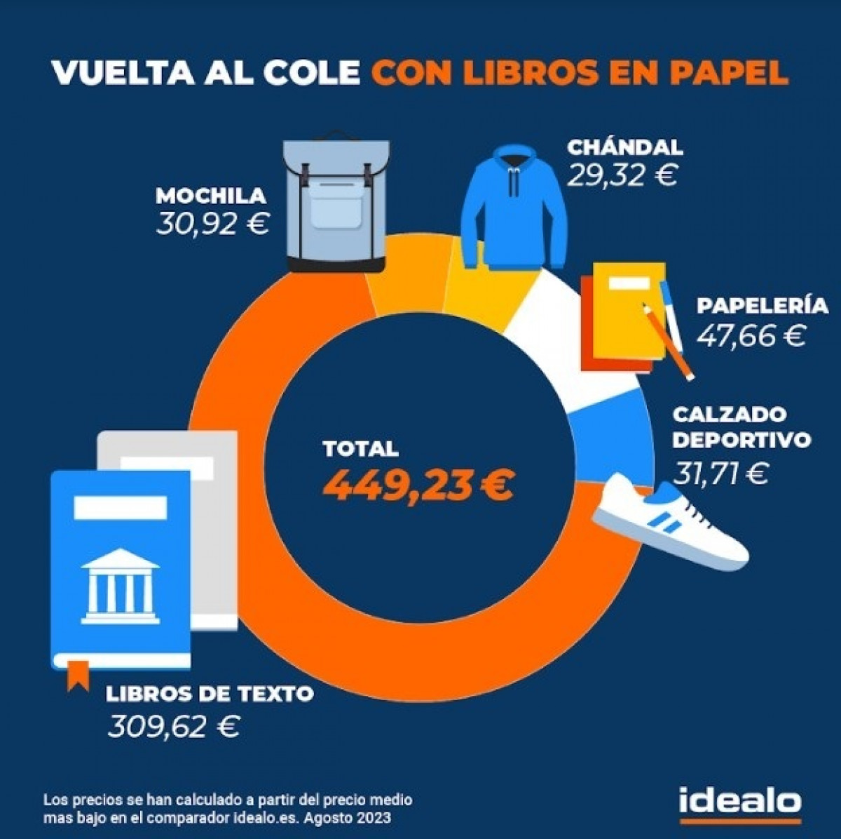 España es el país con los libros de texto más caros de Europa con un precio medio de 22,15 euros por libro, según un estudio elaborado por Idealo.es realizado en agosto de 2023, a partir del precio medio más bajo en el comparador de la plataforma online.