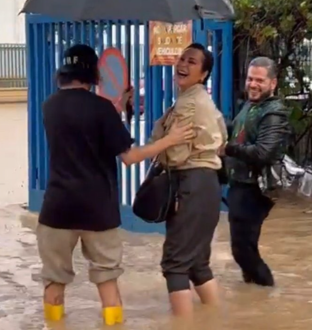 "¡Ay, qué asco!", se puede escuchar a Ana Milán en los stories que grabó Javier Calvo para su cuenta de Instagram, mientras se reía de la situación. En las imágenes se puede ver cómo el agua les llega hasta las rodillas y abandonan el plató como pueden.