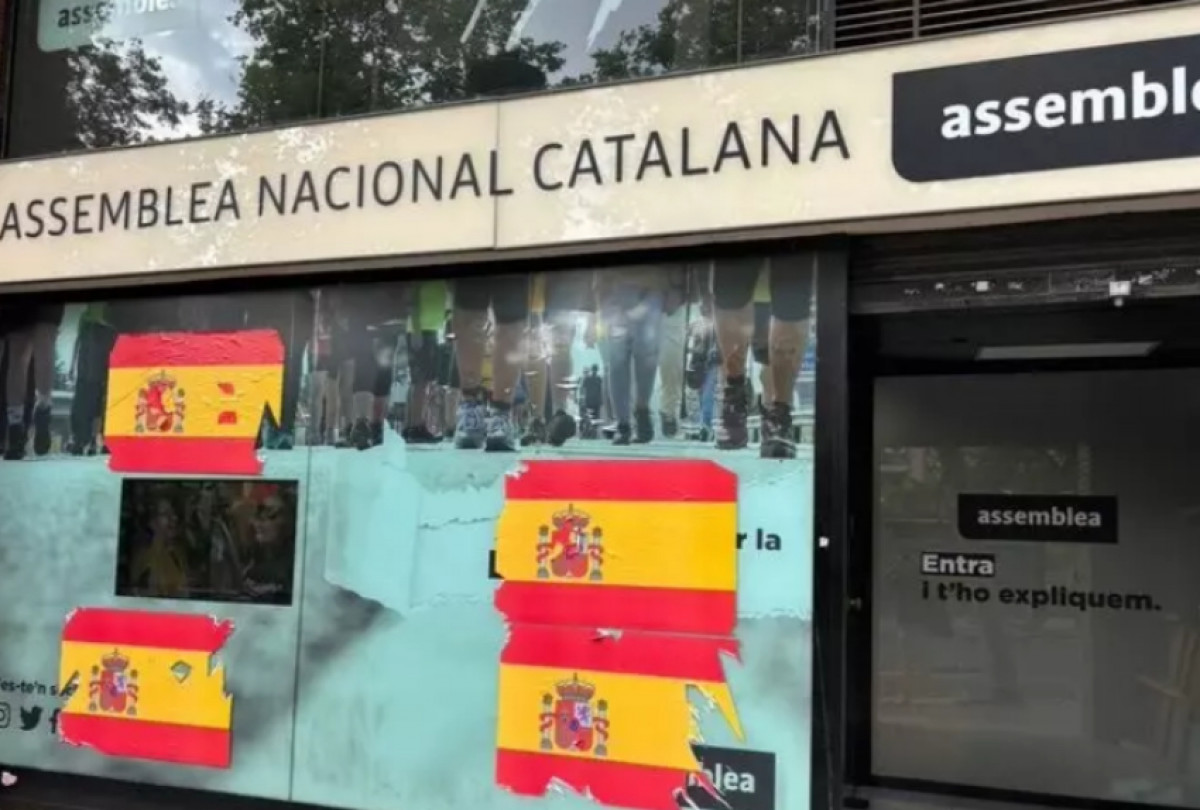 En un comunicado, ha acusado a "grupúsculos españolistas" de vandalizar la fachada del local, una acción que aseguran que denunciarán ante los Mossos d'Esquadra.