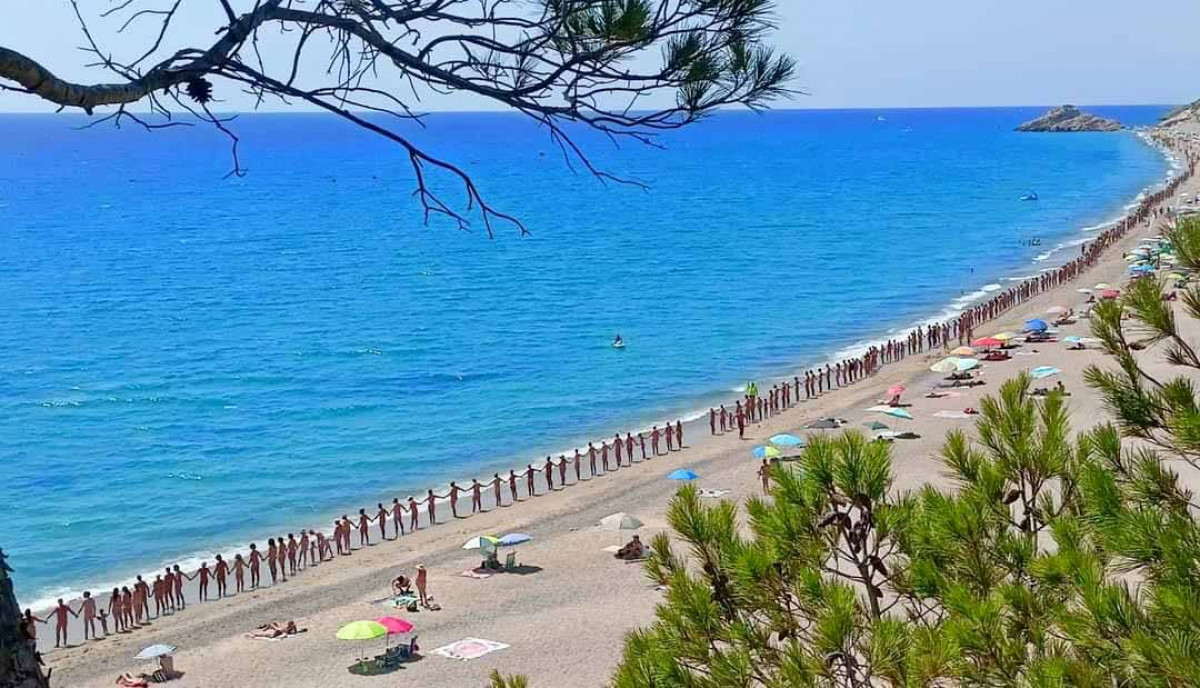 Más de 700 personas hacen una cadena humana nudista en la playa del Torn (Tarragona)