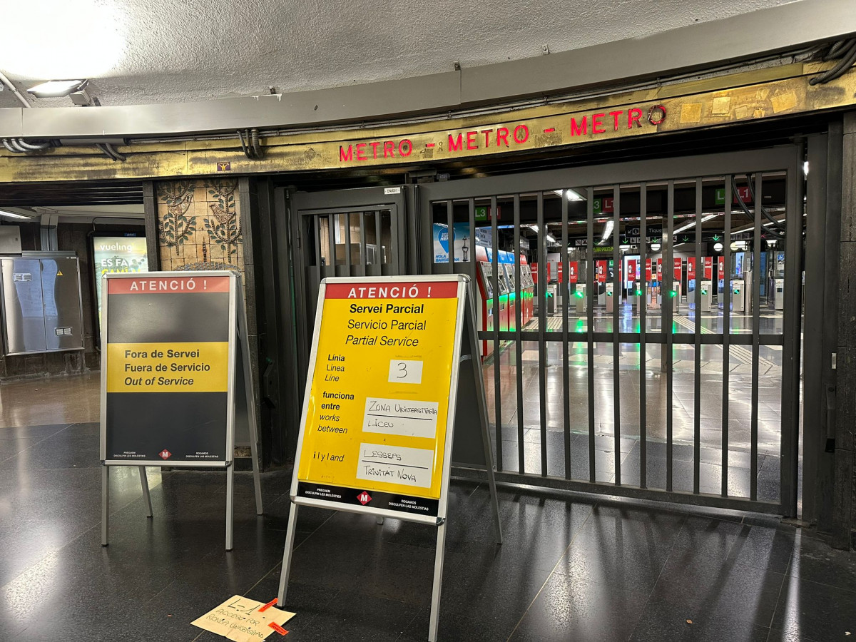 La L3 del Metro de Barcelona ha interrumpido su circulación entre las estaciones de Liceu y Lesseps este martes a las 12:35 horas por un desprendimiento en paseo de Gràcia.