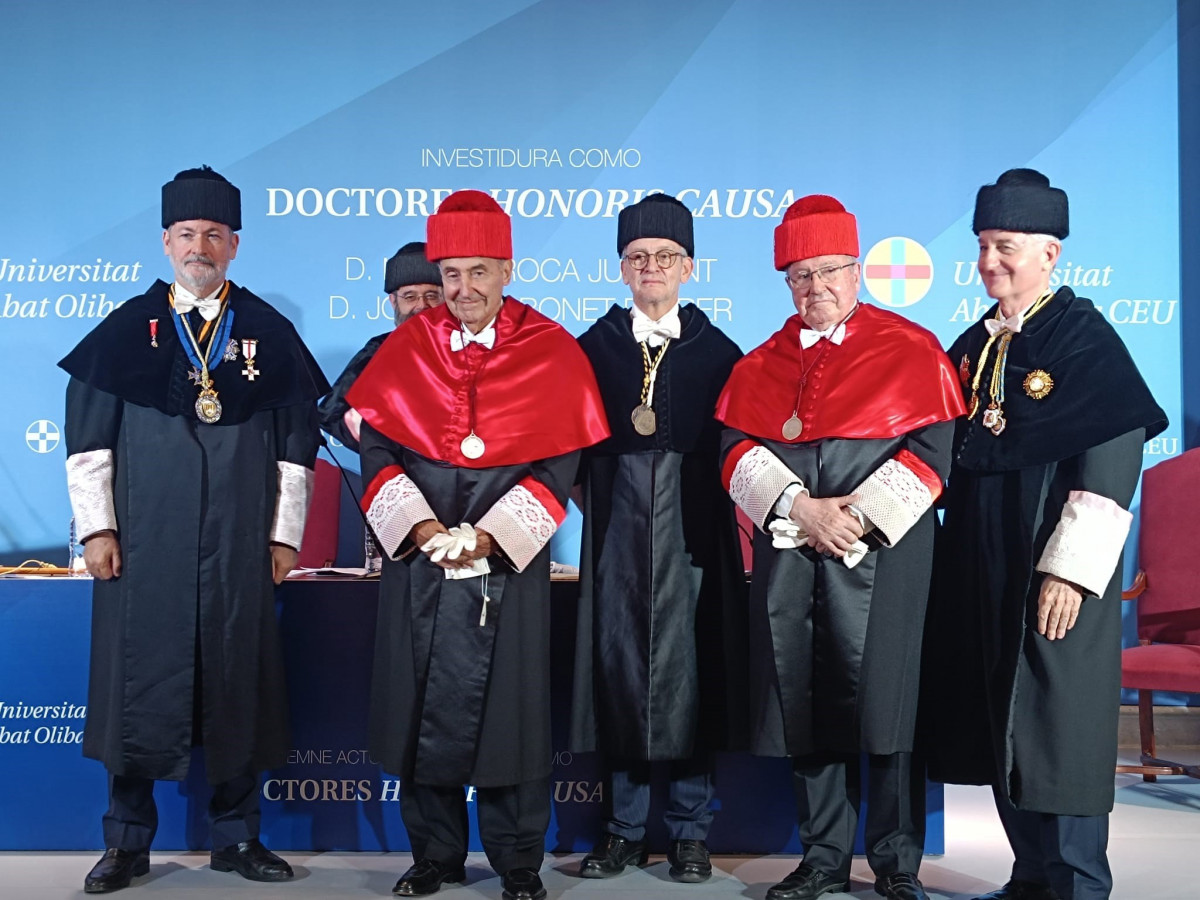 La investidura como doctores honores causa de Bonet y Roca se produce en el contexto de celebración del 50 aniversario de Abat Oliba CEU como institución universitaria.