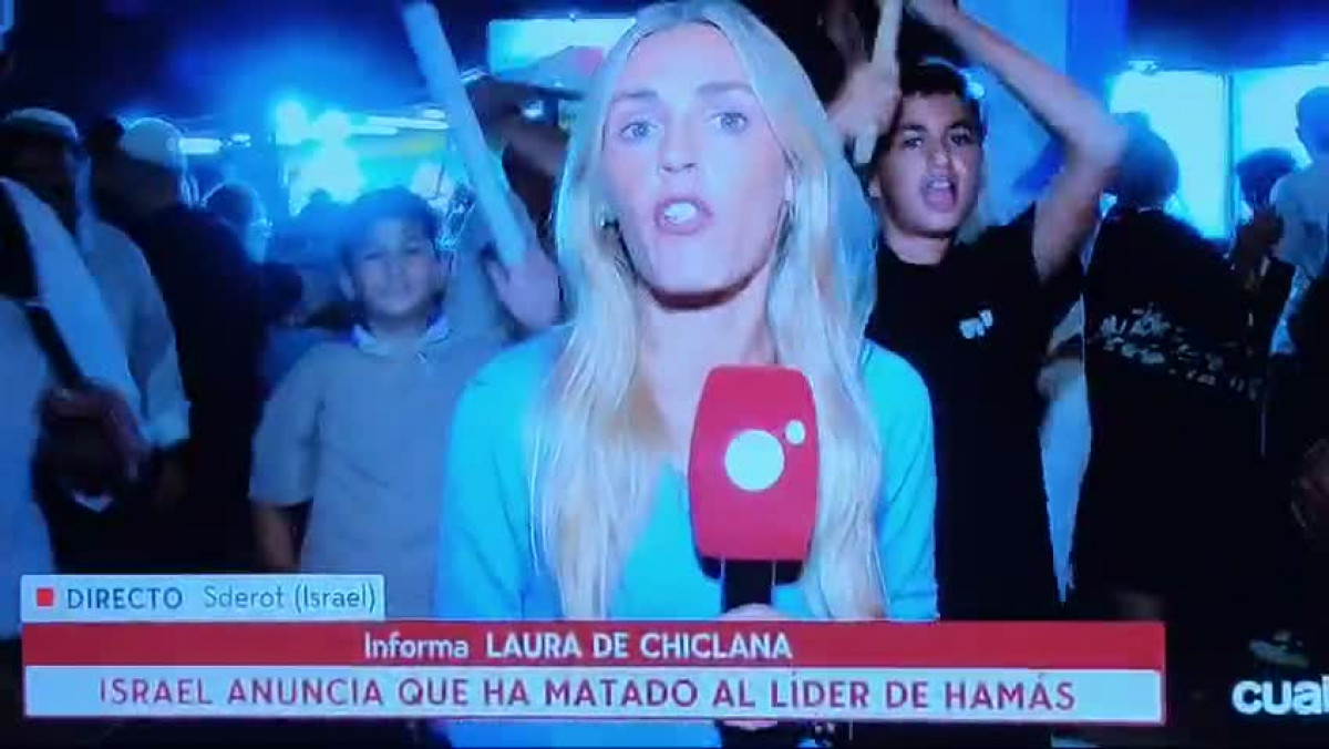 La reportera de Cuatro, Laura de Chiclana, ha sido increpada por un grupo de manifestantes israelíes en la ciudad de Sderot, situada cerca de la frontera con Gaza.