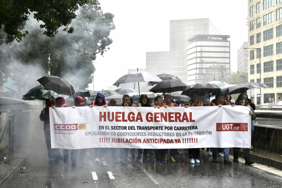 Huelga de conductores: unos 700 manifestantes recorren la Gran Via de Barcelona