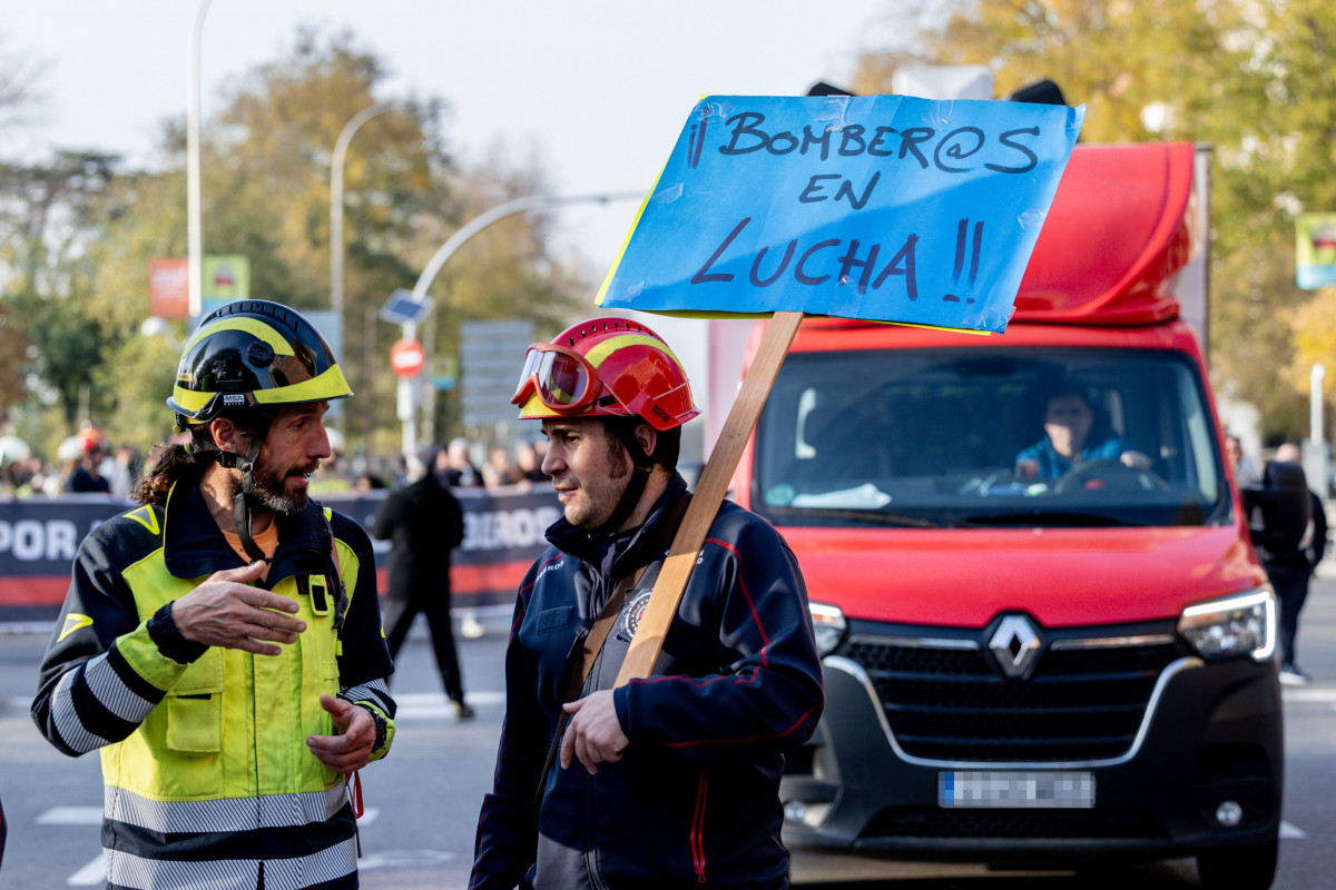 Miles de bomberos de toda España se han manifestado este sábado en Madrid, junto a ciudadanos y distintos colectivos, para denunciar la "descoordinación" que sufren ante tragedias como la DANA que afectó principalmente a la provincia de Valencia, además de para reclamar una Ley Marco de Coordinación de los Servicios de Bomberos.