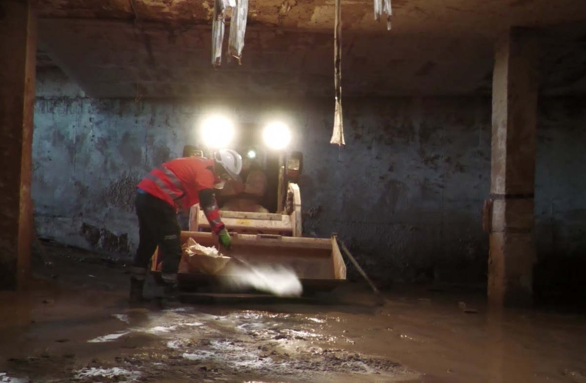 La aplicación de este producto, donado por la empresa Cemex a la Generalitat, permite "en minutos" compactar los lodos que llenan estos espacios tras el paso de la dana del 29 de octubre para que su extracción pueda realizarse a través de mini máquinas cargadoras