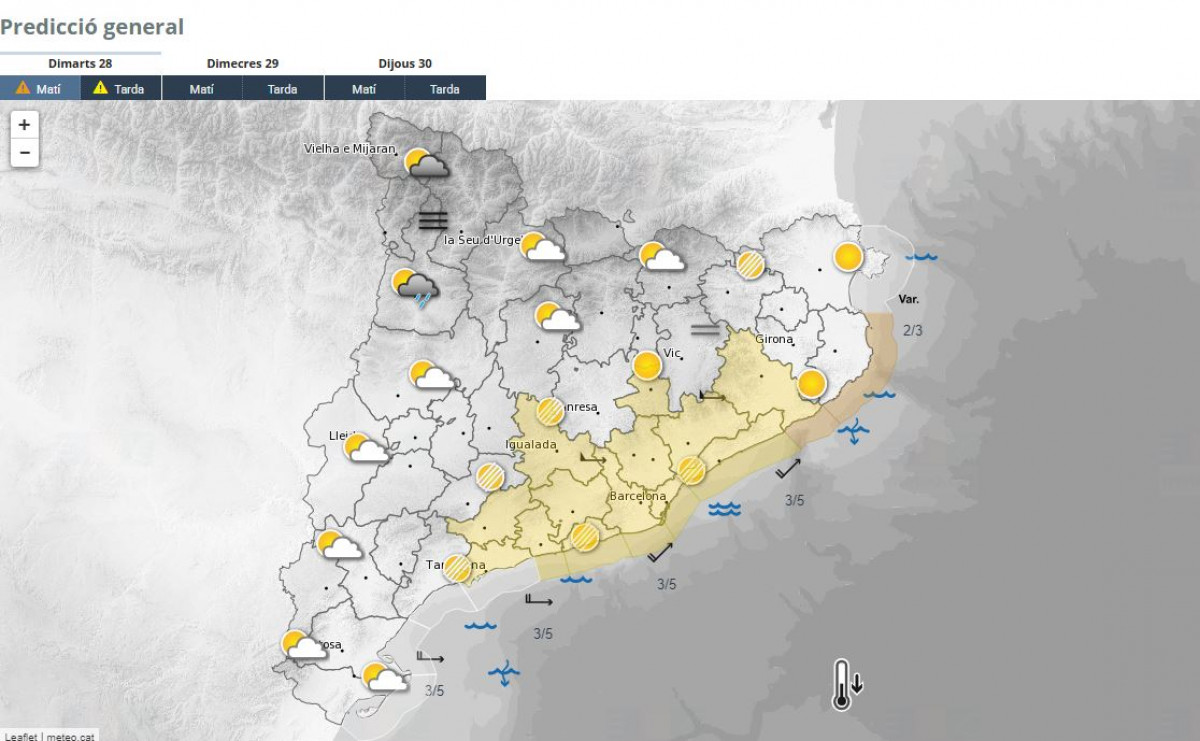 Durante la mañana, Catalunya presentará cielos poco o parcialmente nubosos, con mayor densidad de nubes en el oeste y norte, especialmente en el Pirineo y Prepirineo occidental.