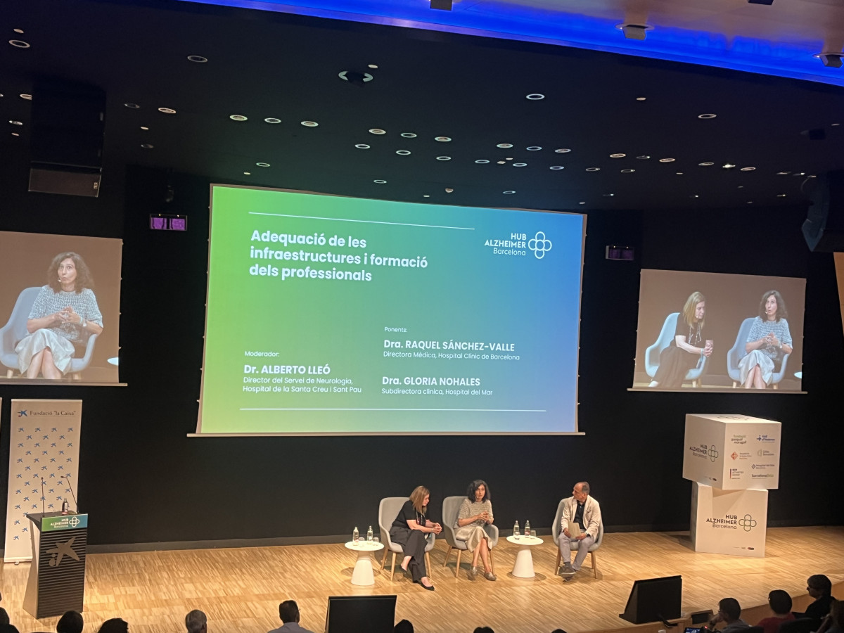 La segunda ponencia en el HUB Alzheimer Barcelona, se ha celebrado una mesa redonda donde tres destacados especialistas como la Dra. Raquel Sánchez Valle (Hospital Clínic), la Dra. Glòria Nohales (Hospital del Mar) y el Dr. Albert Lladó (Hospital de la Santa Creu i Sant Pau) han debatido sobre el impacto, los retos y las oportunidades que plantea la inminente llegada del nuevo fármaco para el Alzheimer aprobado recientemente en Europa: Lecanemab.