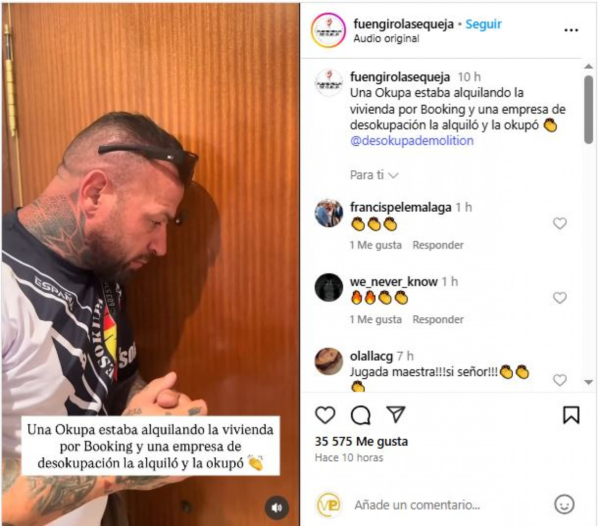 Según ha denunciado la cuenta local de Instagram @fuengirolasequeja, la situación dio un giro inesperado cuando una empresa de desokupación —especializada en recuperar inmuebles para sus propietarios— reservó la vivienda a través de la misma plataforma. Tras acceder legalmente como "huéspedes", procedieron a tomar posesión del lugar, ocupándolo ellos mismos para facilitar la restitución del inmueble a su legítimo dueño.