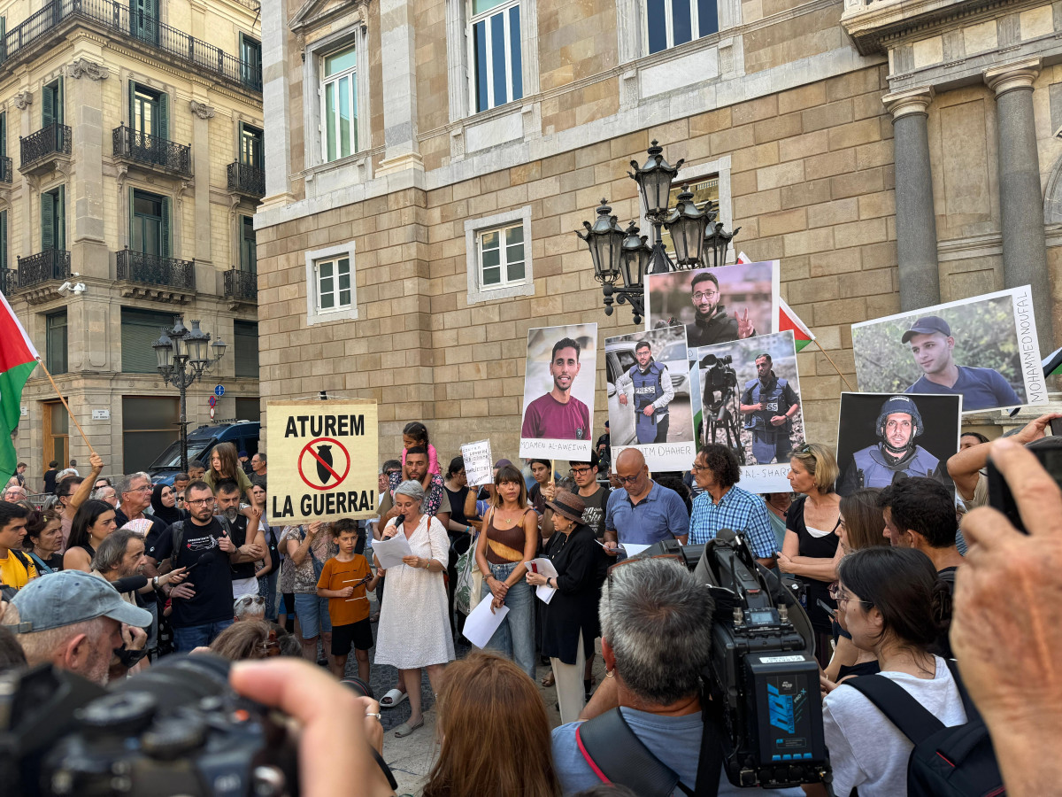 Barcelona ha vivido este miércoles 13 de agosto una de las concentraciones más numerosas en defensa de la libertad de prensa de los últimos años. Según fuentes oficiales del Govern, 1.000 personas se han reunido en la Plaça Sant Jaume para recordar a los periodistas asesinados en Gaza y exigir justicia.