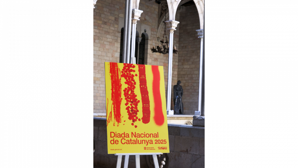 La imagen institucional de la Diada, creada por la cooperativa creativa Partee —formada por los diseñadores Ignasi Roviró, Roger Orriols y Jordi Farrés— reinterpreta las cuatro barras de la senyera a través de las miradas y técnicas artísticas de ciudadanos de distintos orígenes, edades y colectivos. El cartel resultante, ganador del concurso convocado por la Generalitat por cuarto año consecutivo, busca reflejar una Catalunya diversa, inclusiva y creativa. Los carteles finalistas podrán visitarse en una exposición en el vestíbulo del Palau Robert del 3 al 28 de septiembre.