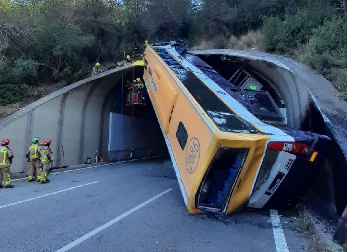 Tal y como se puede ver en las imágenes del Servei Català de Trànsit, el autobús ha volcado en la entrada de un túnel.