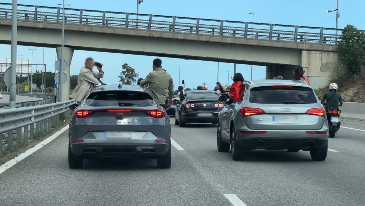 Los Mossos d'Esquadra han denunciado a 8 hombres por conducir con "temeridad manifiesta", algunos de ellos sentados en las ventanillas con medio cuerpo fuera, el pasado junio en la C-32 en Mataró (Barcelona), según ha informado la policía en la red social X.