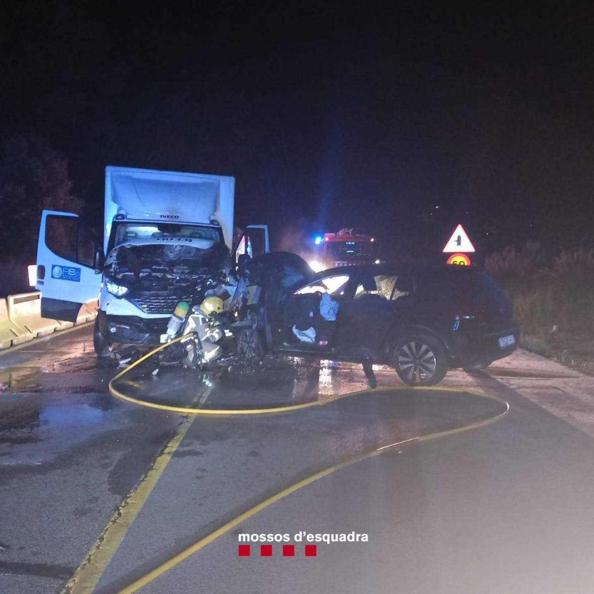 En un comunicado este miércoles, han explicado que el coche circulaba en sentido Lloret de Mar (Girona) e invadió el carril contrario y chocó frontalmente con el camión, que se incendió.