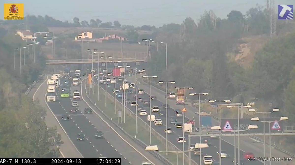 Un accidente provoca grandes retenciones en la AP-7 a la altura de la Roca del Vallès