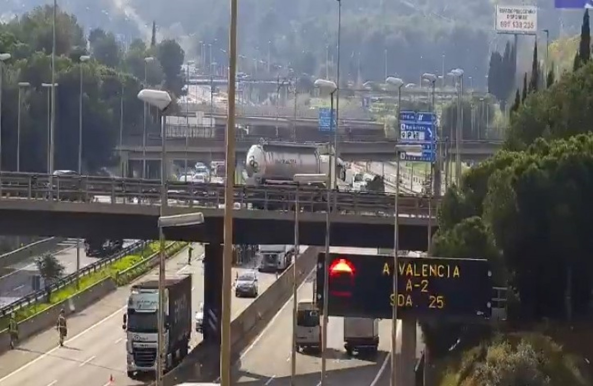 Un accidente entre dos camiones este miércoles al mediodía en la autopista AP-7 en Barberà del Vallès (Barcelona) ha obligado a cortar dos carriles en sentido Girona.
