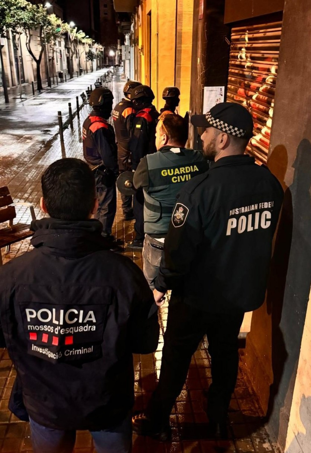 Los Mossos d'Esquadra y la Guardia Civil han detenido este miércoles a 9 personas durante un operativo en Barcelona contra una organización internacional asentada en la capital catalana y con ramificaciones en Australia, presuntamente dedicada al tráfico de cocaína y otras drogas sintéticas.