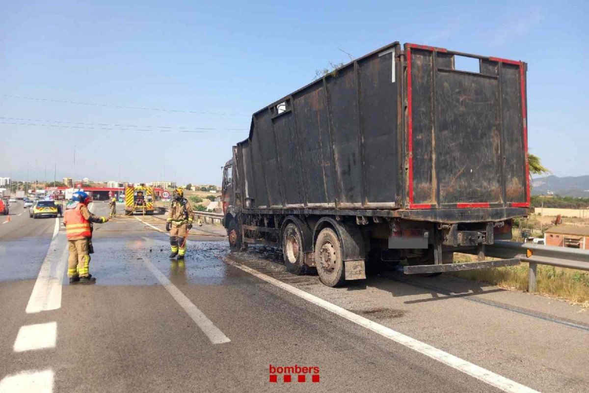 El fuego ha sido extinguido por los Bombers, que aún trabajan con cinco dotaciones para limpiar la vía; no hay fuga de combustible