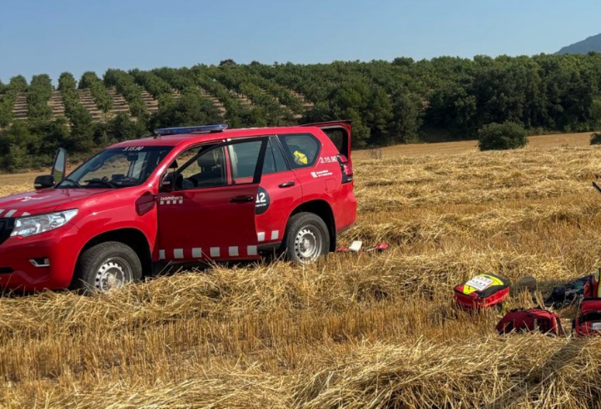 El herido fue evacuado en helicóptero al Hospital Arnau de Vilanova tras caer en un campo de cultivo en la Noguera