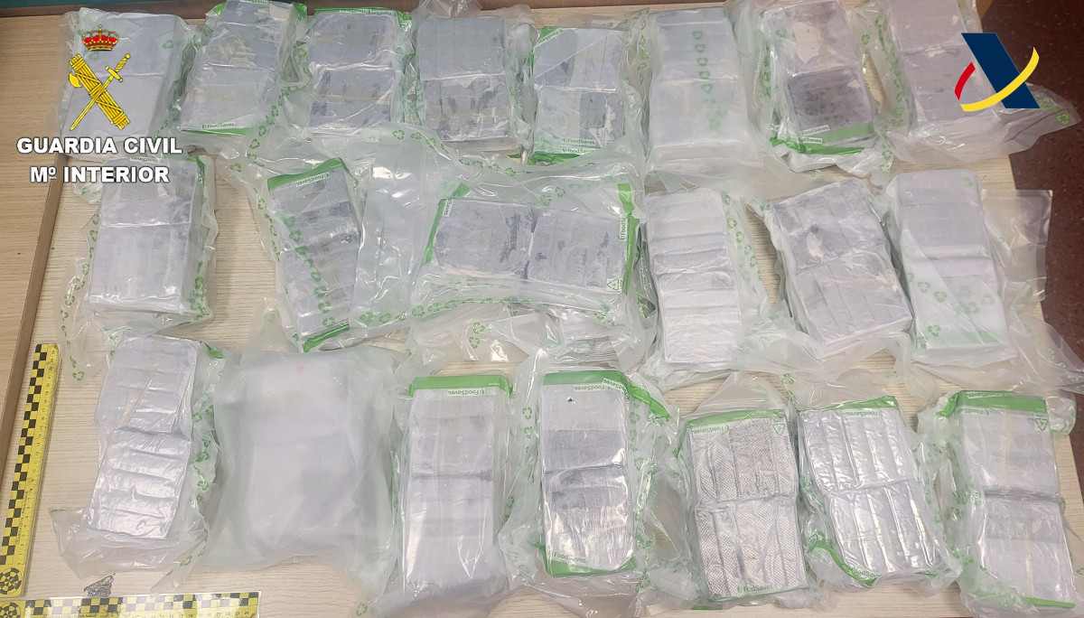 En el interior de las maletas se encontraron numerosos bloques que, tras ser sometidos al correspondiente análisis, dieron positivo en hachís. Uno de los detenidos transportaba 18,10 kilos de droga, mientras que el otro llevaba 24,54 kilos, lo que equivale a unas 170.000 dosis individuales.