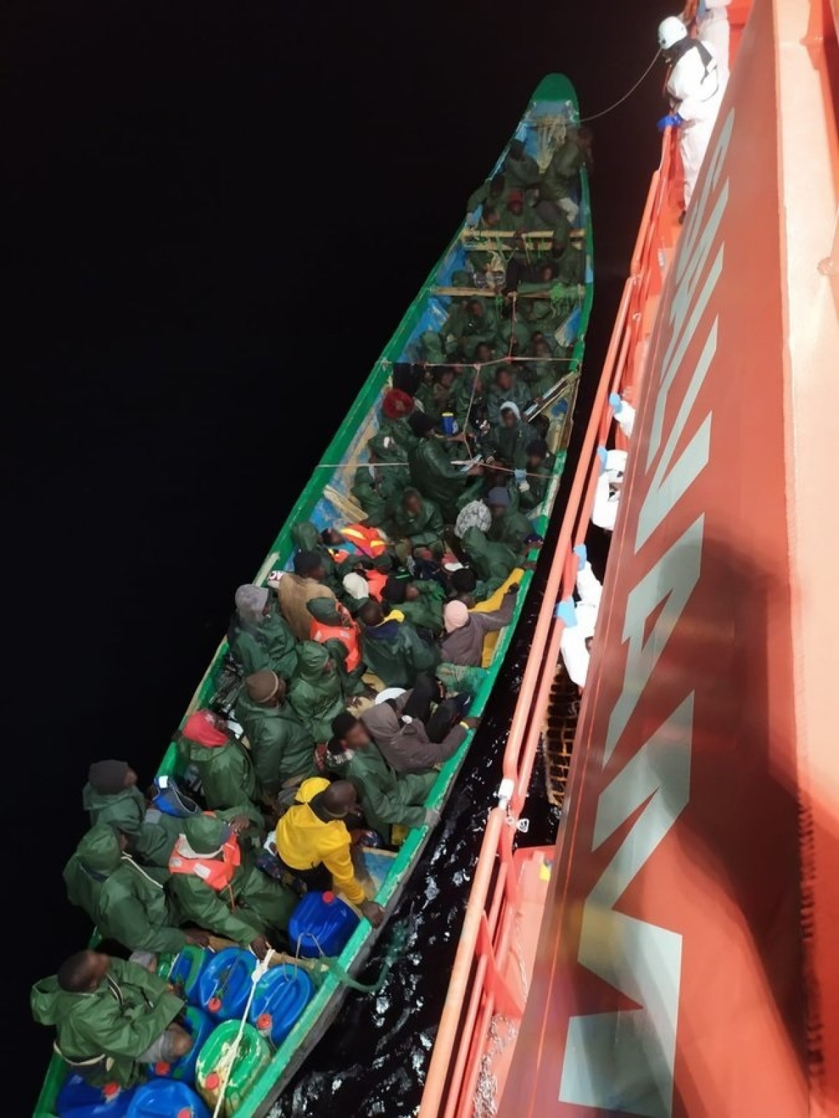 El segundo cayuco fue avistado por la Guardia Civil a unas 15 millas al suroeste de Gran Canaria, en torno a las 3:15 de la madrugada. La Guardamar Urania se encargó del rescate y trasladó a los ocupantes al muelle de Arguineguín, donde desembarcaron pasadas las 8:00 horas.