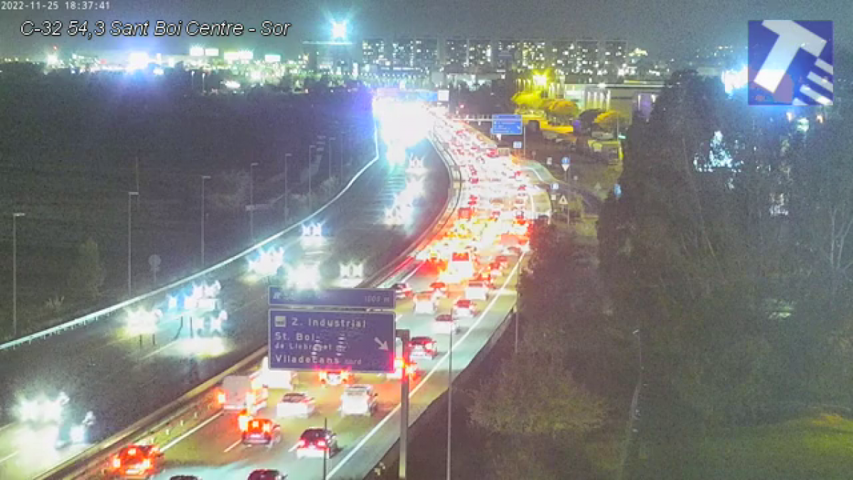 Dos carriles cortados en la C-32 en Sant Boi por un accidente