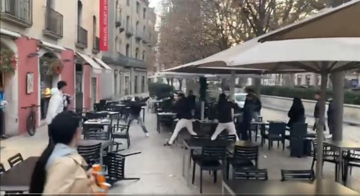 VIDEO. Batalla campal en pleno centro de Figueres: un grupo de jóvenes se lanzan sillas, ceniceros y platos