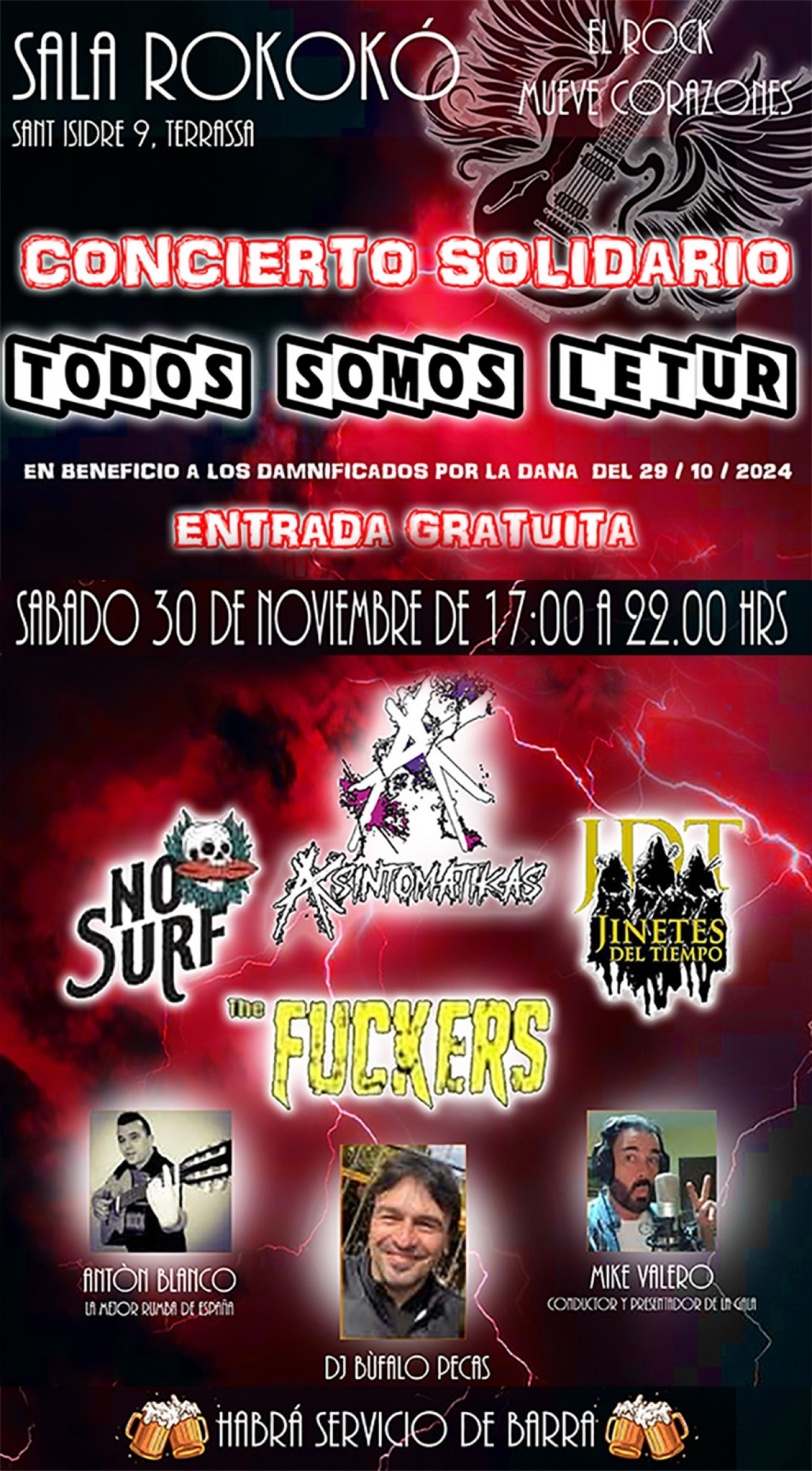 El próximo 30 de noviembre, de 17:00 a 22:00 horas, se celebrará en la sala Rokokó de Terrassa un concierto solidario bajo el título "Todos somos Letur" una población de Albacete. La entrada es gratuita y el evento tiene como objetivo apoyar a las personas afectadas por la DANA que golpeó tanto a Valencia el pasado 29 de octubre pero también Albacete.