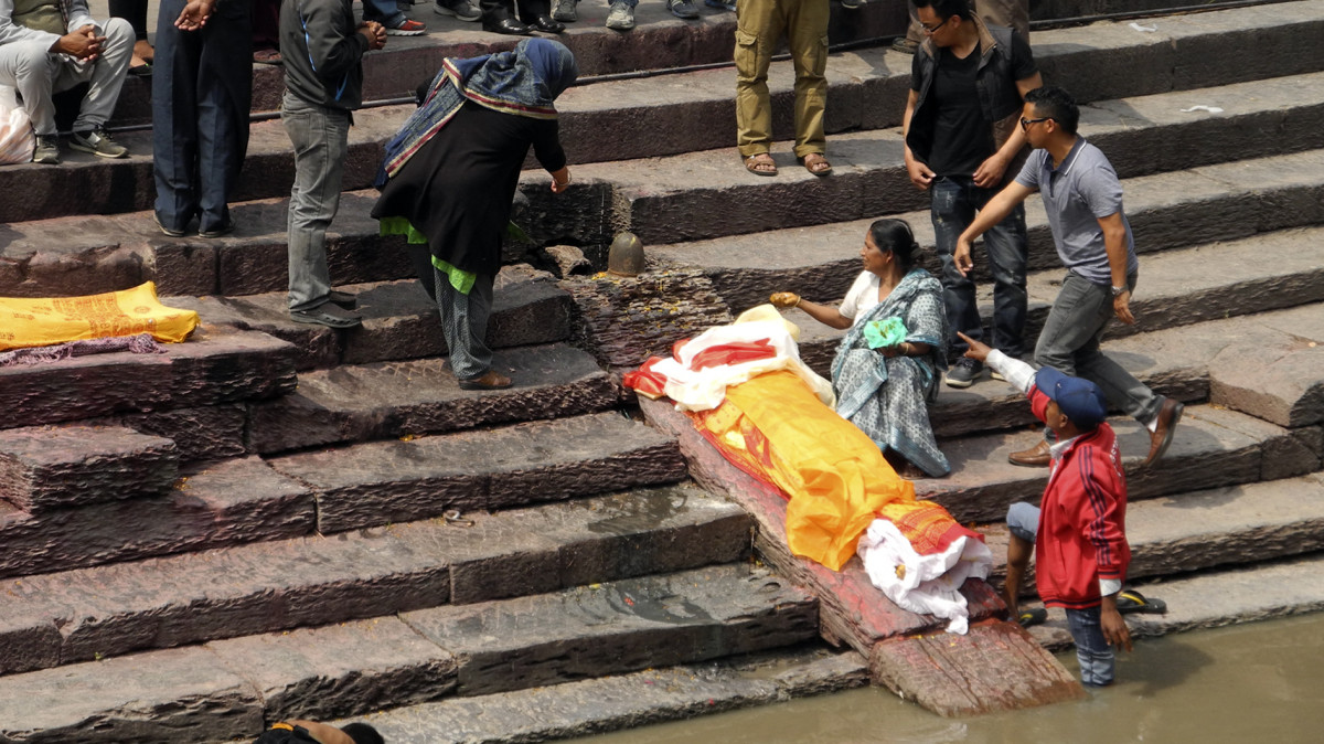 En Nepal hay dos maneras de llegar al cielo, una, bajando por las tranquilas aguas del río Bagmati y la otra, subiendo al Annapurna, al K2 o a la montaña del Everest. En ambos casos uno no debe olvidar la moneda para pagar a Caronte, “el barquero”. El río Bagmati es un afluente del Ganges, nace en la cordillera del Himalaya y sus aguas, al pasar por el templo de Pashupatinath en el valle de Katmandú, acogen las almas desprendidas de los cuerpos para llevarlas al cielo. Poco antes de iniciar ese viaje, los hindúes, y también en otras culturas, preparan al viajero: le cierran los ojos y la boca, le asean, le visten, y cubren su cuerpo con una sábana de color amarillo anaranjado, el color de la transformación para los hindúes.