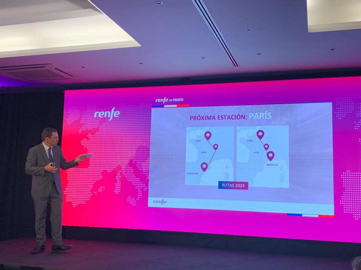 El presidente de Renfe, Raül Blanco, ha anunciado este lunes por la mañana en el Hotel Barceló Sants que el próximo mes de julio se llevará a cabo los primeros viajes hacia Francia y que el gran objetivo de la compañía es establecer la ruta hasta París en 2024.
