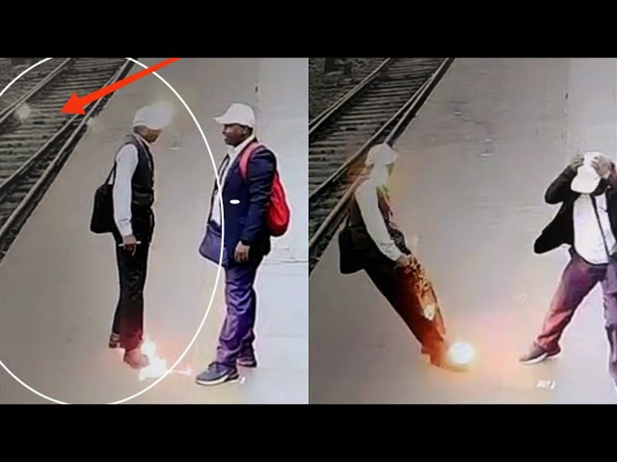 En el video, se puede ver cómo un cable eléctrico golpea la parte superior de su torso, lo que hace que su ropa se encienda brevemente mientras cae hacia atrás sobre las vías del metro.