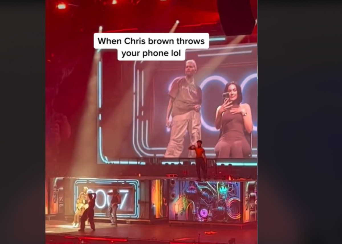 La chica no deja el móvil, intentando grabar todo el rato que compartía junto al cantante de 33 años. Sin embargo, Brown se hartó de que la joven estuviera más pendiente del móvil y se lo cogió de las manos para lanzarlo hacia la audiencia, ante la incredulidad de ella.