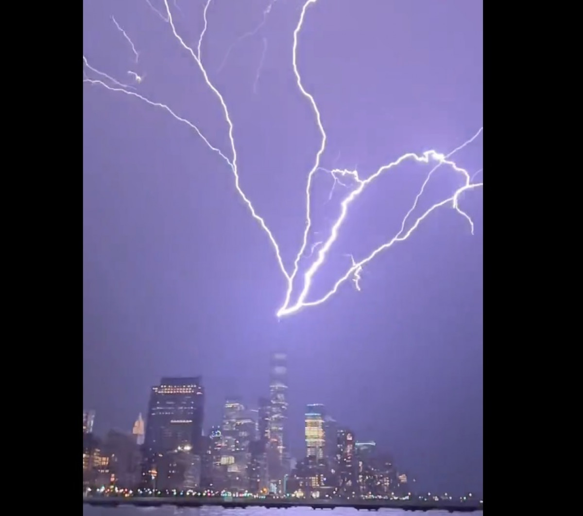 Durante la tarde del sábado, se registró una imagen impactante: un rayo cayó en el World Trade Center, iluminando toda la ciudad. Lo más sorprendente es que el rayo cayó en el One World Trade Center, el edificio más alto de EE. UU. desde 2013, que fue construido después del atentado yihadista de 2001 en Nueva York, que destruyó las Torres Gemelas y otros edificios de la zona.
