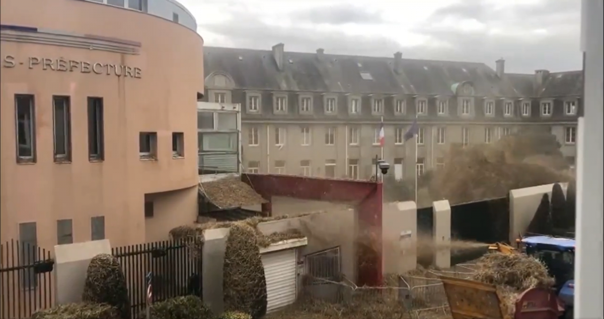 La frustración de los agricultores franceses con la política agrícola gubernamental cada vez va a mayores. La última protesta que llevaron a cabo fue el hecho de arrojar estiércol sobre los edificios gubernamentales, y este vídeo se ha viralizado en las redes sociales.