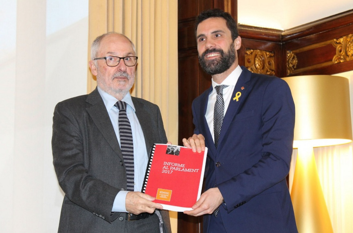 En su informe, el Síndic de Greuges señala referente a los hechos relacionados con el 1-O que Catalunya "vivió una sacudida, tanto por la vulneración de la Constitución y otras leyes por parte de la Generalitat, como por la respuesta del Gobierno central a estas vulneraciones".