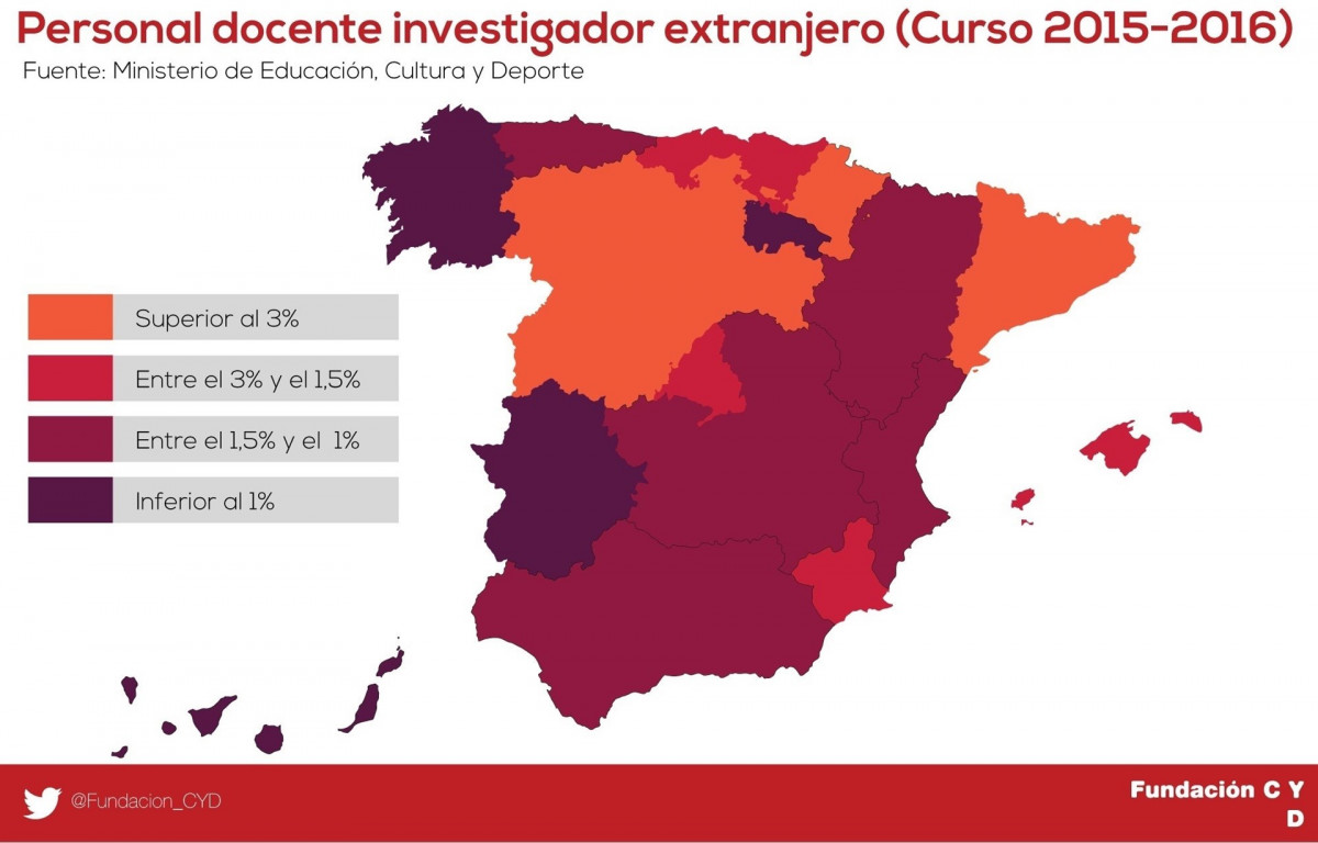 La Fundación CYD, con datos del curso 2015-2016, señala que Catalunya, junto a Navarra (4,6%) y Castilla y León (3,5%) son las únicas que se sitúan por encima del 3%.