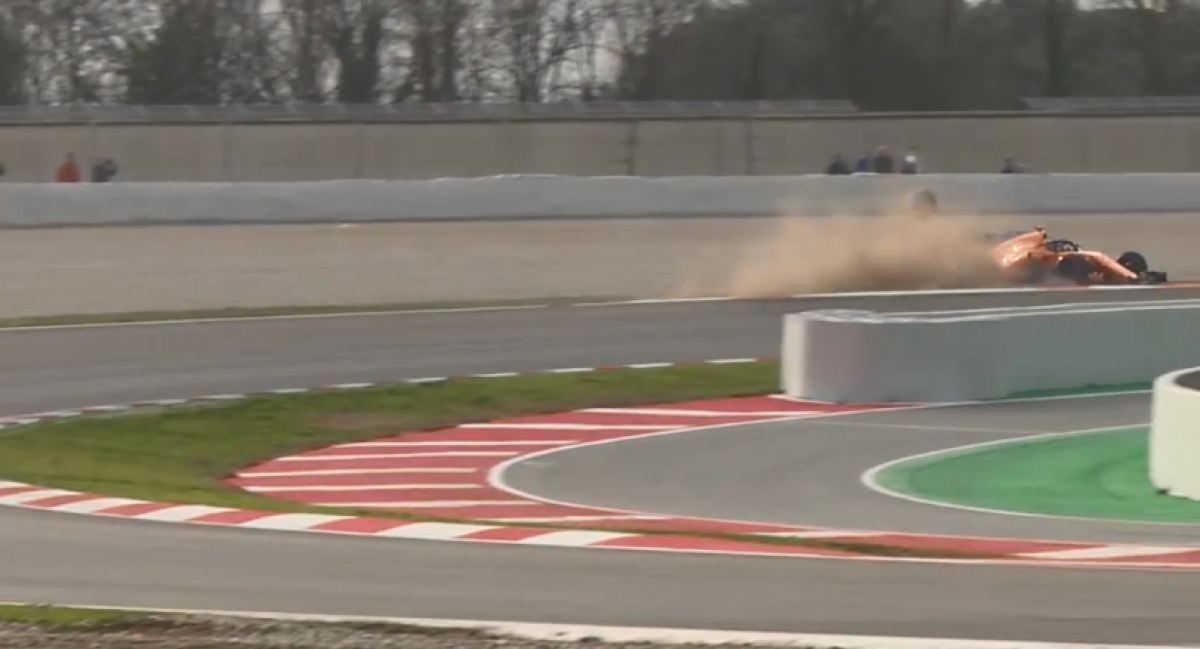Fernando Alonso tiene un accidente en el circuito de Barcelona