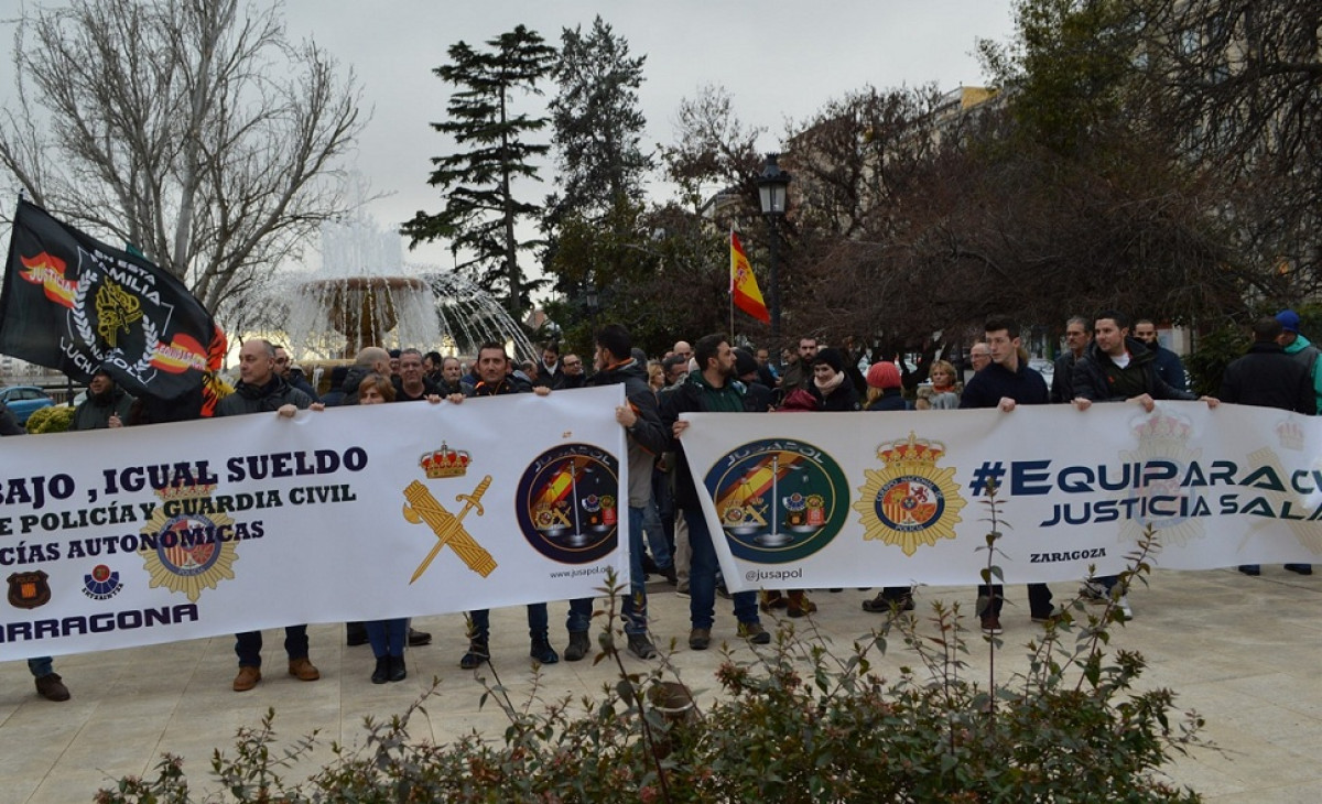 Un portavoz de la Justicia Salarial Policial (Jusapol) ha explicado a los medios de comunicación, que "un policía nacional con trienios cobra 1.500 euros brutos, un guardia civil 1.450 y un mosso sin trienios 1.900".