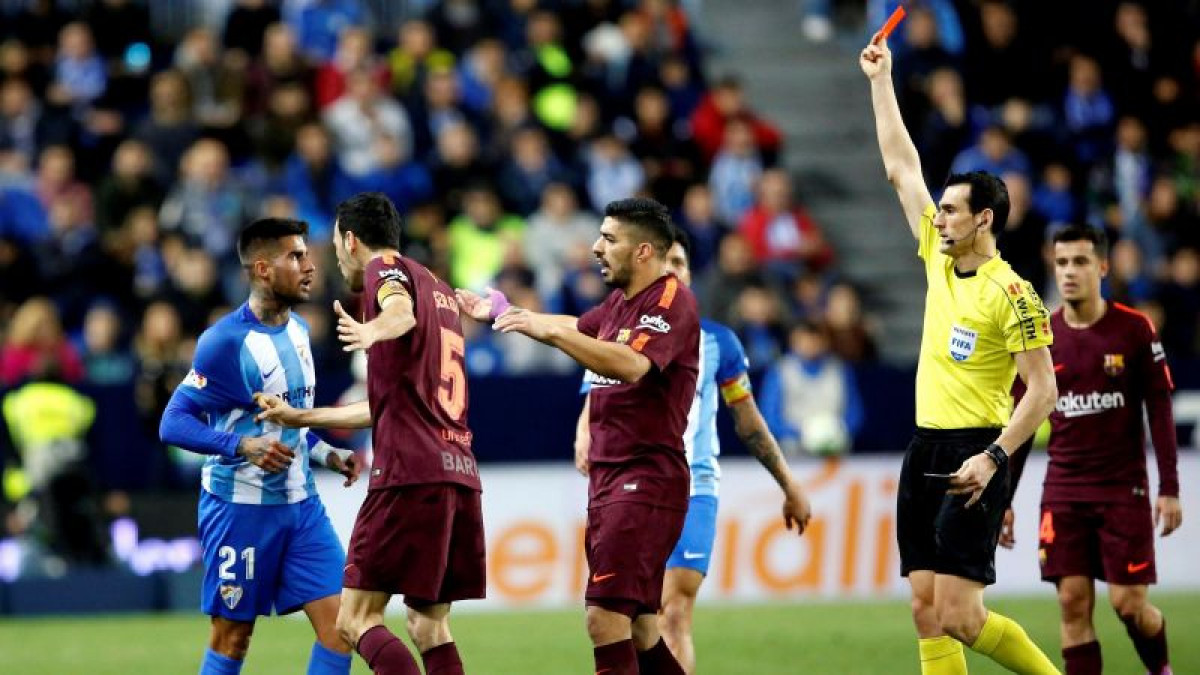 Tarjeta roja sin discusión para Samu, centrocampista del Málaga (EFE)